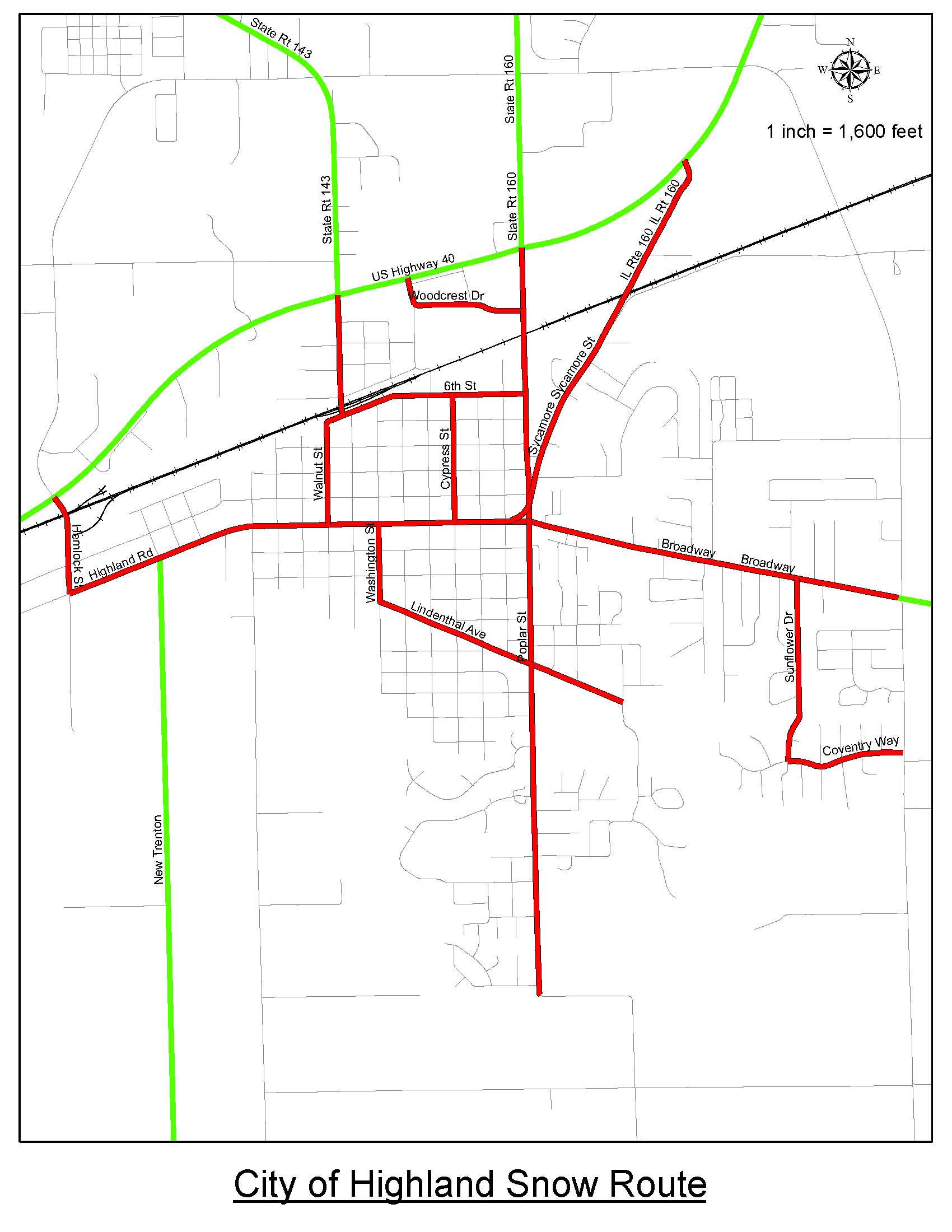 Poplar St.; Lindenthal Ave.; Washington St. from Lindenthal to Broadway; Walnut St. from Broadway to U.S. Hwy. 40; Hemlock; Cypress St. from Broadway to 6th St.; Sycamore St.; Woodcrest Dr.; 6th St. from Poplar St. to Walnut St.; Broadway; Sunflower from Coventry to Broadway; Coventry from Sunflower to Iberg Rd.